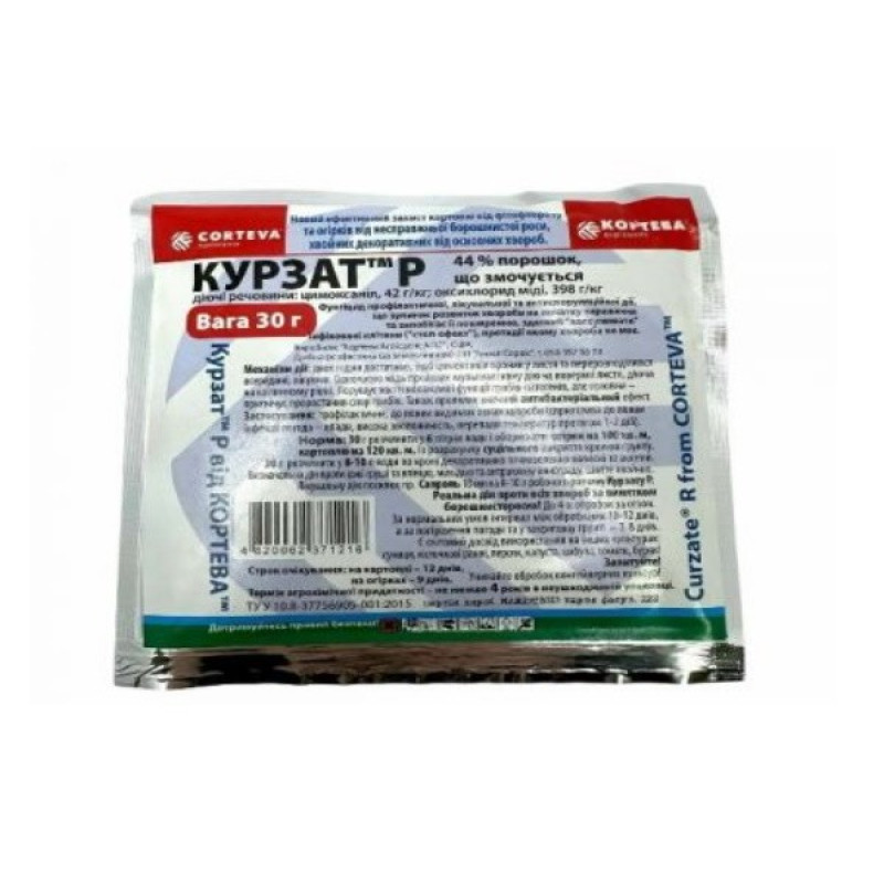 Переваги: препарат має тривалу захисну дію. Дві діючи речовини, що входять до складу, забезпечують надійний захист - всередині і зовні рослини. Двох годин достатньо, щоб цимоксаніл проник у листя та перерозподілився всередині, лікуючи. Одночасно мідь проявляє мультиактивну дію на поверхні листа. Препарат порушує життєво важливі функції патогенів та пригнічує прорастання спор. Також Курзат Р надає антибактеріальну дію.
