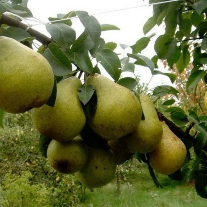 Плоди: дуже великі, вагою 320-380 г, окремі - 500 г, широкогрушевидні, зеленувато-жовті з благородною оржавленністю. М'якоть соковита, масляниста, з легким мигдальним ароматом.