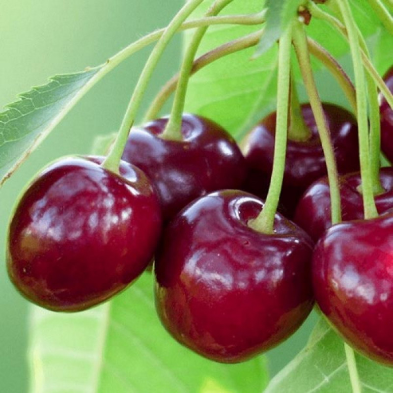 Плоды: большие 10-11 г, сердцевидной формы красного цвета. Мякоть красная, твердая, кисло-сладкая.