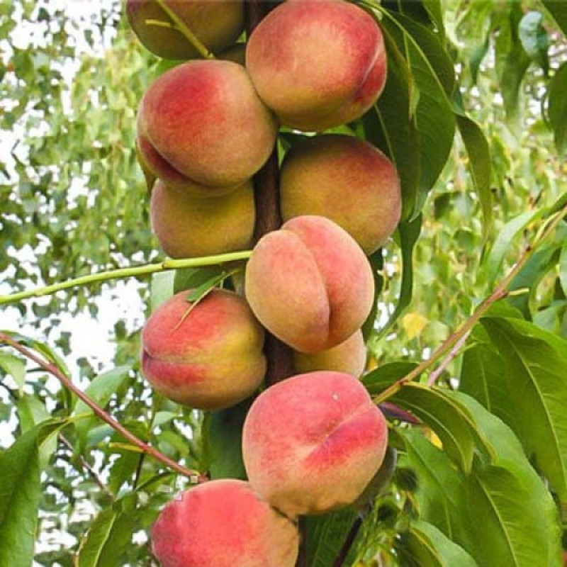 Плоды: большие, весом 150-200 г (иногда более 300 г), слегка плоские, желто-красные.