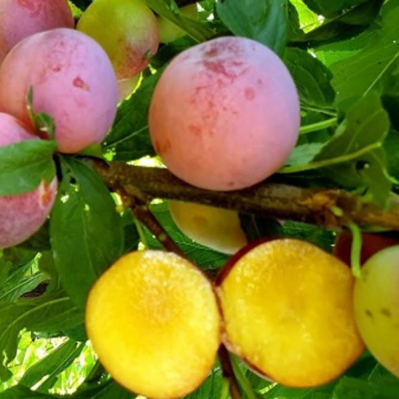 Плоды: 60-80 г, округло-овальные, оранжево-пурпурные.