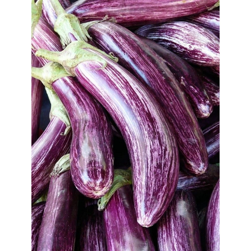 Плоди: циліндричні плоди смугастого (білого кольору з бузковими смугами) забарвлення, довжиною 22-24см. М’якоть кремово-біла, щільна, без гіркоти.