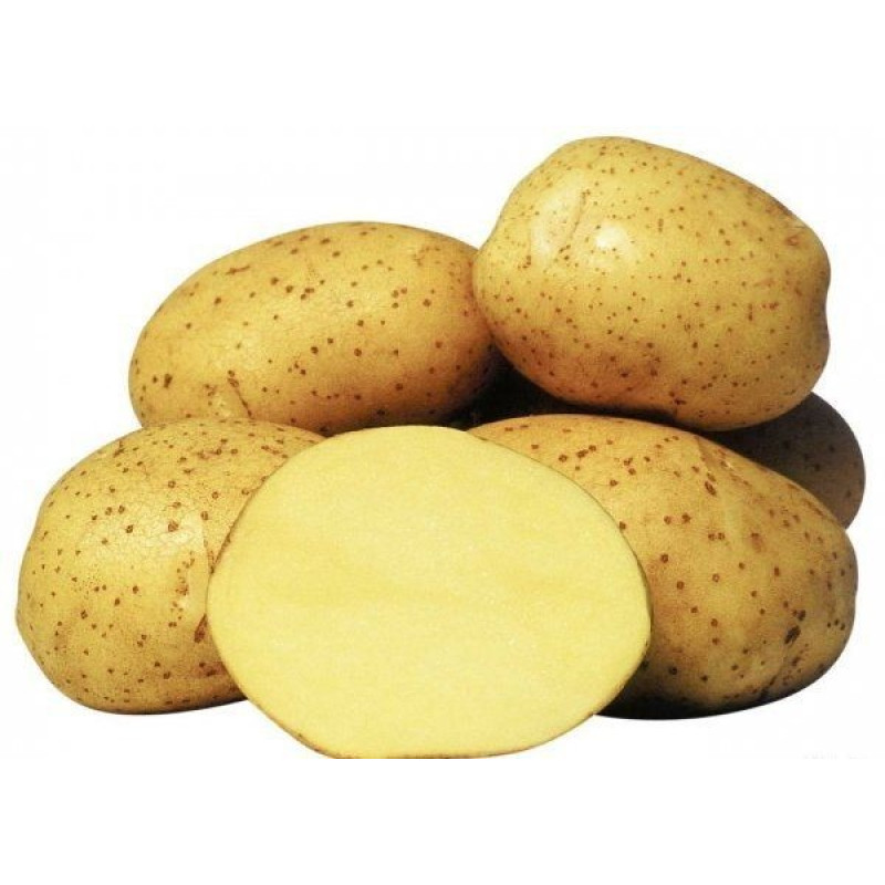 Плоди: овальні, світло-жовті з жовтою м'якоттю, не розварюються (тип B) і добре зберігаються (лежкість до 90-95%). Формує 10-15 вирівняних бульб під кущем, вага однієї — 80-140 г.