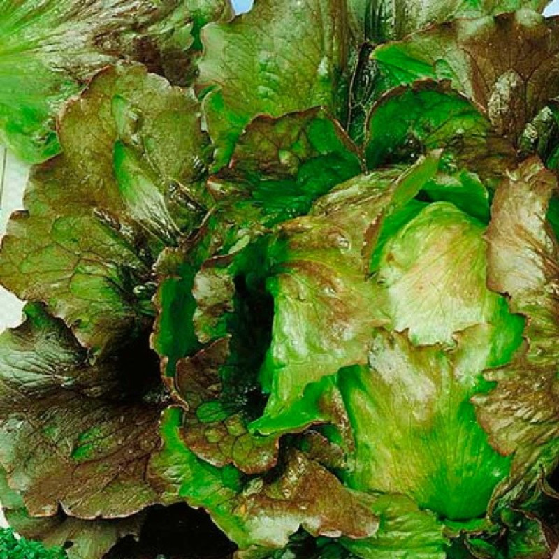 Листя: формує привабливий пухкий качан із гофрованого хрусткого листя із винно-червоним рум’янцем на кінчиках зелених листків.